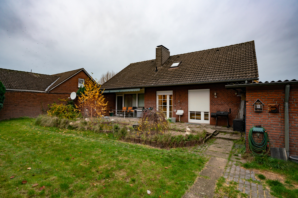 Dieses Einfamilienhaus befindet sich in sehr ruhiger Sackgassenlage von Nordhorn. Es wurde im Jahr 1975 auf einem ca. 534 m² großen Grundstück mit ca. 128 m² Wohnfläche erbaut.Aufteilung Erdgeschoss: