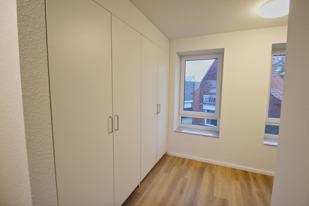 Diese moderne Obergeschosswohnung befindet sich in dem Neubau eines Mehrparteienhauses mit elf hochwertigen und modernen Wohneinheiten, sowie einer Gewerbeeinheit in bester Lage von Nordhorn. Die Gewerbeeinheit wird durch die SDN als Verwaltungssitz genutzt. Das Objekt ist bezugsfertig. Es wurde auf einem ca. 1.525 m² großen Eigentumsgrundstück fertiggestellt. Das Haus ist in massiver Bauweise errichtet. Es wurden Kunststofffenster mit 3-fach Verglasung - Wärmeschutzglas eingebaut. Des Weiteren sind hochwertige Sanitäranlagen verbaut.
