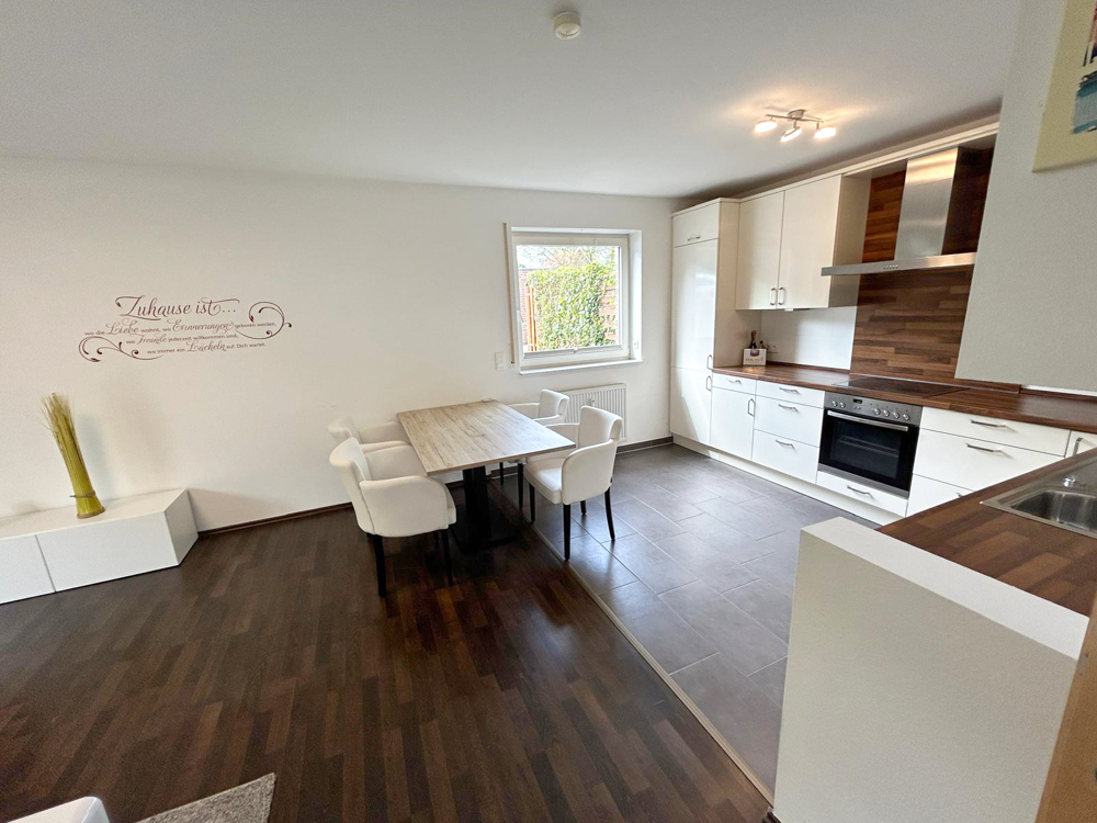 - Wohnen / Essen / Kochen inkl. Einbauküche mit Zugang in den Garten