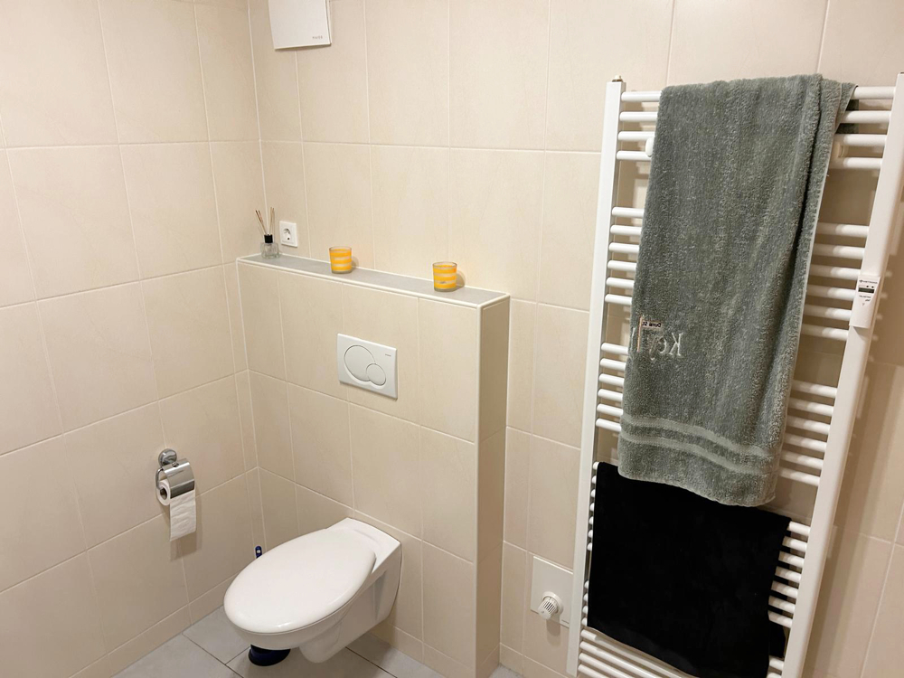 - Badezimmer mit Handtuchheizkörper und Fußbodenheizung