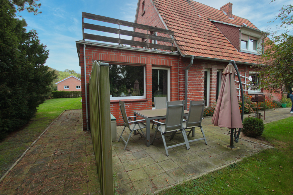 Willkommen in Ihrem neuen Zuhause in Wilsum! Dieses charmante Zweifamilienhaus wurde im Jahr 1956 in einer kleinen Siedlung erbaut. Auf einem großzügigen Grundstück von ca. 1.834 m² bietet dieses Objekt viel Platz zur persönlichen Entfaltung. Das Haus kann sowohl als Einfamilienhaus, als auch als Zweifamilienhaus genutzt werden.Mit einer Wohnfläche von ca. 100 m² und insgesamt 7 Zimmern, darunter 3 Schlafzimmer und 2 Badezimmer, ist Platz für Ihre gesamte Familie. Die gut geschnittenen Räume sorgen für eine behagliche Wohnatmosphäre und bieten vielfältige Gestaltungsmöglichkeiten. Im Erdgeschoss befindet sich eine komplette Wohnung mit Küche, Bad, WC, Schlafzimmer, Wohn- und Esszimmer, sowie eine gemütliche Terrasse mit Blick in den großen Garten. Das Obergeschoss verfügt ebenfalls über ein Bad mit Dusche und WC, eine Küche, Schlafzimmer und Wohnzimmer, sowie einer Dachterrasse.