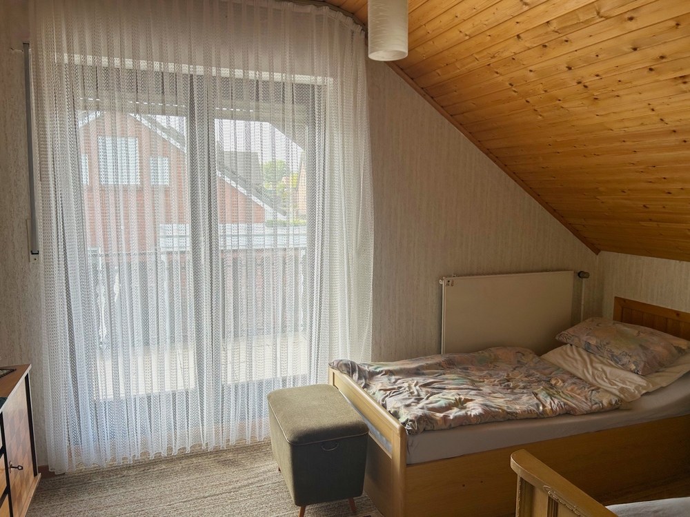 Das Obergeschoss wurde teilweise ausgebaut und verfügt über zwei gemütliche Zimmer mit Zugang zu einem gemeinsamen Balkon. Zwei weitere Zimmer befinden sich im Rohbauzustand und bieten viel Gestaltungsspielraum. Zusätzlich gibt es einen sehr großen Bodenraum mit Potenzial zur weiteren Wohnraumerweiterung sowie Zugang zu einem zweiten, überdachten Balkon. Die Bodenräume sind nicht in der Wohnfläche berücksichtigt.