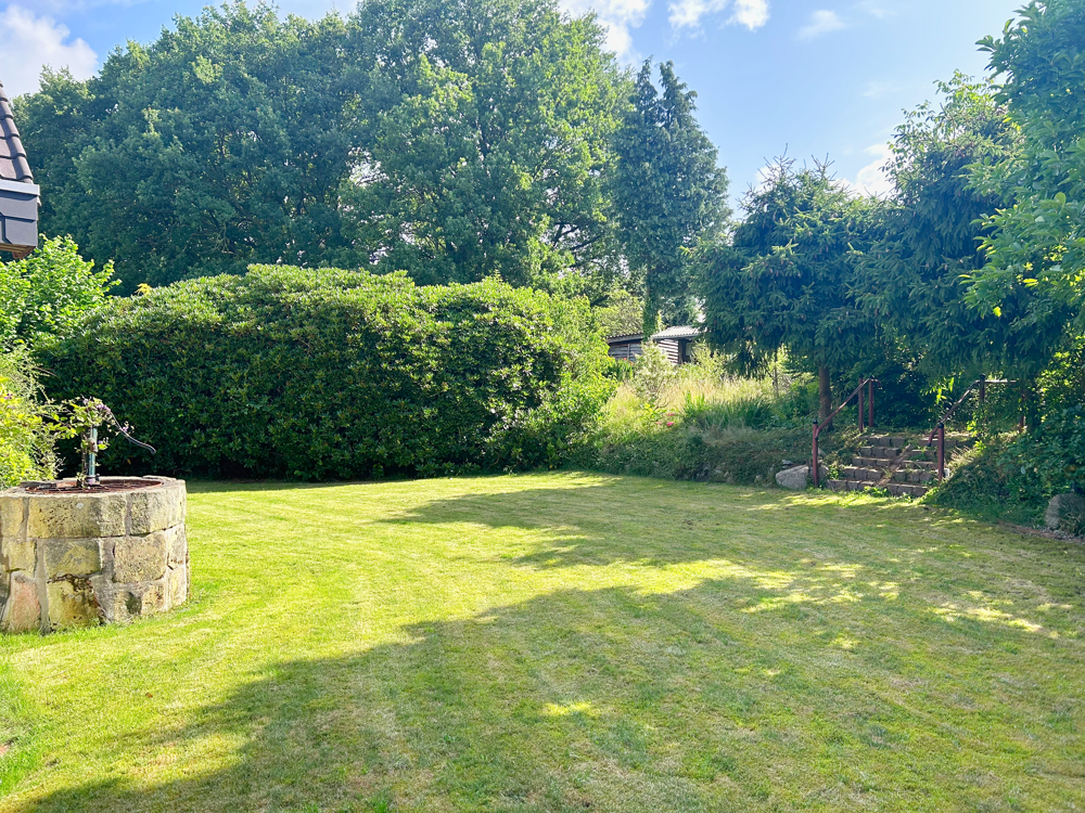 Das Grundstück erstreckt sich über 1.639 m² in länglicher Form. Der Garten ist derzeit naturbelassen und bietet Naturliebhabern und Hobbygärtnern zahlreiche Möglichkeiten zur individuellen Gestaltung.