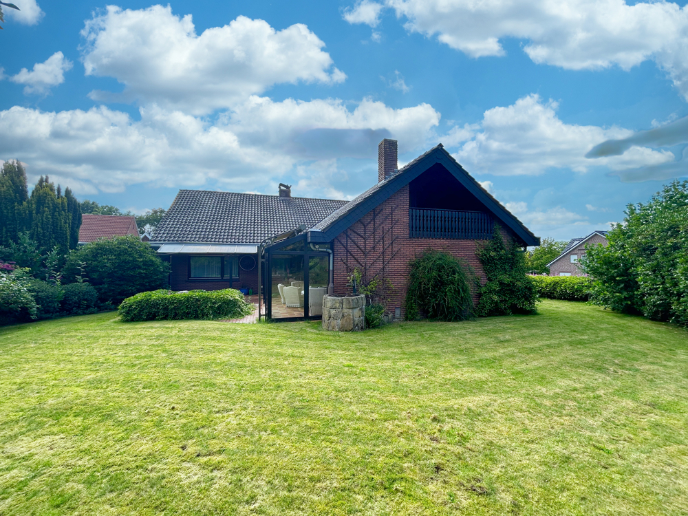 Dieses freistehende Wohnhaus bietet mit ca. 130 m² Wohnfläche und einem weitläufigen Grundstück von 1.639 m² viel Raum für Familienleben, Hobby und individuelle Entfaltung. Die Immobilie überzeugt durch eine durchdachte Raumaufteilung, vielseitig nutzbare Flächen und zahlreiche Ausbaumöglichkeiten. Ebenerdiges Wohnen ist hier möglich. Des weiteren besteht die Möglichkeit, durch den Ausbau des Dachraums eine separate Wohnung im Obergeschoss zu schaffen.Der einladene Eingangsbereich führt Sie in das gut geschnittene Erdgeschoss. Hier finden Sie ein Gäste-WC, einen separaten Schlafbereich mit zwei Zimmern, einem Büro sowie ein Badezimmer mit Badewanne und Dusche. Das großzügige Wohnzimmer mit direktem Zugang zum beheizbaren Wintergarten lädt zu gemütlichen Stunden mit Blick ins Grüne ein. Eine separate Küche sowie ein angrenzendes Esszimmer runden das Raumangebot auf dieser Ebene ab.