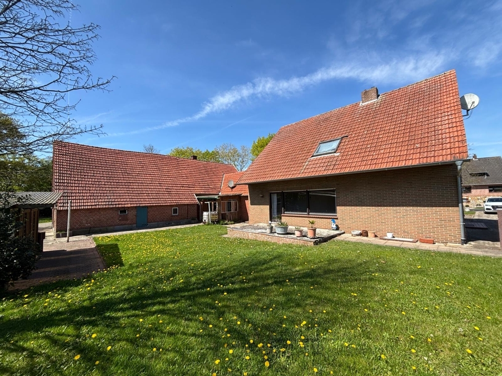 Ein großzügiges Wohnhaus mit viel Potenzial in EmlichheimWillkommen in diesem charmanten Wohnhaus mit zwei Wohneinheiten, das sich in einer ruhigen Randlage von Emlichheim befindet. Auf einem weitläufigen Grundstück von ca. 2.478 m² genießen Sie eine idyllische Umgebung mit altem Eichenbaumbestand und angrenzendem Grünland.