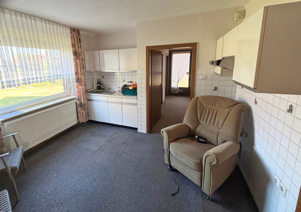 Dieses Einfamilienhaus befindet sich in ruhiger Randlage von Emlichheim auf einem Grundstück, das offiziell 688 m² umfasst. Im Zuge einer geplanten Grundstücksteilung wird die Fläche, auf der sich aktuell eine Blechgarage befindet, dem Nachbargrundstück zugeordnet. Nach der Teilung beträgt die Grundstücksgröße des angebotenen Objekts somit ca. 638 m² - Skizze auf Anfrage.Die Immobilie bietet eine kompakte, gut nutzbare Raumaufteilung – ideal für Paare, kleine Familien oder Senioren, die ebenerdiges Wohnen schätzen.