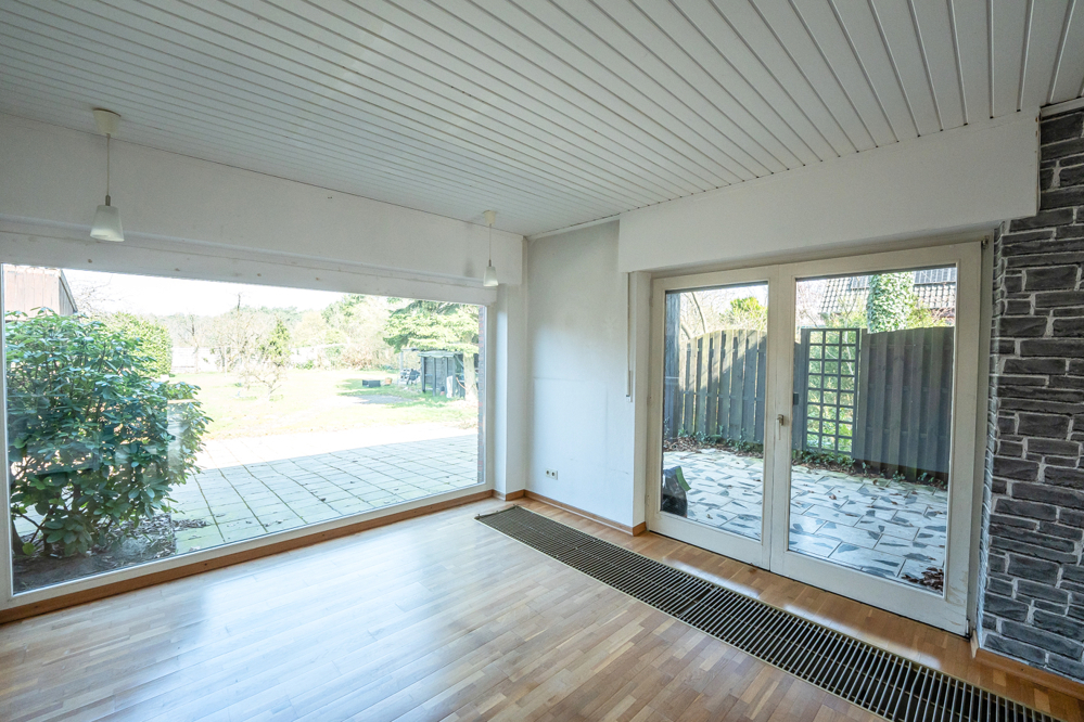- Wohn- und Esszimmer mit Zugang in den Garten