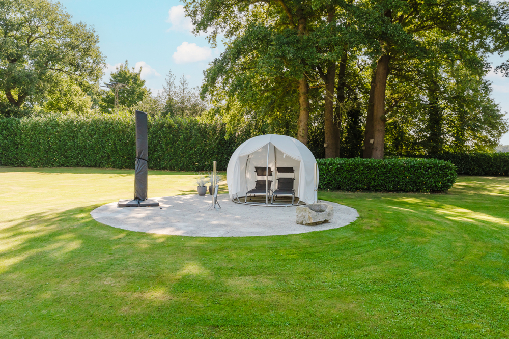 Das parkähnliche Grundstück von über 2 ha bietet absolute Privatsphäre – mit altem Baumbestand, Pool, Jacuzzi, „Man Cave“ mit Bar und weiteren Nebengebäuden.