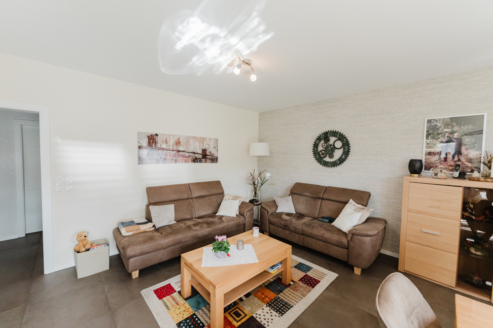 Das Haus präsentiert sich in einem äußerst gepflegten Zustand und wurde mit hochwertigen Materialien ausgestattet. Große Fensterflächen sorgen für lichtdurchflutete Räume und ein angenehmes Wohngefühl. Zur Ausstattung gehören eine Erdwärmeheizung, eine moderne Be- und Entlüftungsanlage mit App-Steuerung, ein Smart-Home-System von Eltako, ein Glasfaseranschluss sowie eine Fußbodenheizung in allen Räumen. Darüber hinaus ist eine Photovoltaikanlage mit 16 kW zur Eigennutzung vorhanden. In der Küche stehen Miele-Geräte und ein Quooker zur Verfügung, und auch die Gartenbewässerung lässt sich bequem per App steuern. Für E-Mobilität ist das Objekt bestens gerüstet: Eine Wallbox ist bereits installiert, eine zweite ist vorbereitet. Abgerundet wird das Angebot durch eine Garage, einen Abstellraum und PKW-Stellplätze im Freien.